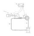 この回路には、図1に示すように、機器である例えば、チューブ2a、2b、2c、ドライブモータ9で駆動される遠心ポンプ3及び人工肺4等の人工心肺回路等が含まれる。FIG. 1 is a schematic view showing the main configuration of a