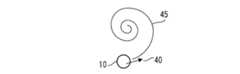 螺旋モードでは、障害物に遭遇した場合に様々な動作がなされる。例えば、ロボットは、(a)障害物を回避して反時計回りの螺旋運動を続けようとするか、(b)障害物を回避して反対方向に螺旋運動を続けようとする(例えば、反時計回りから時計回りに変更する)か、又は(c)動作モードを変更する。螺旋運動を逆回りで継続するのは、反射螺旋(reflective spiral)として知られており、図6Cに示されている。ここでは、ロボット10は、障害物101に接触したときに、動作経路45を反転させている。好適な実施形態では、ステップ220に詳述するように、衝突センサ12又は13が最初の障害物に遭遇したときに、ロボット10はスポット清掃モードから離脱する(ステップ230)。  In the spiral mode, various actions are taken when an obstacle is encountered. For example, the robot may either (a) try to avoid the obstacle and try to continue the counterclockwise spiral movement, or (b) try to avoid the obstacle and keep the spiral movement in the opposite direction (e.g. Change from clockwise to clockwise) or (c) change the operating mode. Continuing the helical motion back is known as a reflective spiral and is shown in FIG. 6C. Here, when the