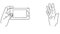 例えば、赤外線カメラ4は携帯電子機器1の右側面に限らず、左側面(図1のT2面)、上側面(T4面)、下側面(T3面)の何れに設けられてもよく、任意の側面方向においてユーザによってジェスチャ入力が行われてもよい。また、複数の側面に赤外線カメラ4が設けられてもよい。例えば、携帯電子機器1の左側面に赤外線カメラ4が設けられる場合には、上述したガイド表示(輪郭画像21およびガイド枠画像22)は、ディスプレイ2の画面の左側に表示される。また、携帯電子機器1の姿勢に応じて、ガイド表示の表示位置が異なるようにしてもよい。携帯電子機器1は、姿勢検出部16によって自機の姿勢を検出することができ、例えば、画面に垂直な軸に何度回転されたかを角速度センサや加速度センサによって検出することができる。例えば、通常、図6Aに示すように赤外線カメラ4が右側に位置するように把持されるところ、ユーザが左右が反転するように携帯電子機器1を把持した場合は、赤外線カメラ4は左側に位置するようになる。この場合、右手で携帯電子機器1が把持され、左手でジェスチャ入力が行われる。このような場合は、上記ガイド表示は、ディスプレイ2の左側に表示される。具体的には、ユーザが左手を直接見たときと同じような見え方となるように、パースがかかったガイド表示がディスプレイ2の左側に表示される。すなわち、ディスプレイ2の表示画面のうち、赤外線カメラ4によって撮像される側面方向と同じ側に上記ガイド表示が表示される。  For example, the