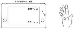 また、他の構成では、前記入力画像に基づいてユーザの手を検出する検出手段をさらに備えてもよい。前記処理手段は、前記検出手段による検出結果に基づいて、前記アプリケーション処理を行う。 In another configuration, the apparatus may further include detection means for detecting a user's hand based on the input image. The processing means performs the application processing based on the detection result by the detection means.