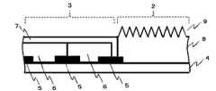 なお、図4では、転写版凸部12とCF基板1は一定の距離を持って描かれているが、これは、濡れ性の小さい領域2と濡れ性の大きい領域3の区別を分かりやすくするための誇張であり、実際は上述のように配向膜材料16を介して接触している。  In FIG. 4, the transfer plate