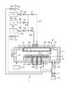 また、図中63は窒素(N2)ガスの供給源であり、ガス供給管43の上流端が接続されている。ガス供給管43には下流側に向けて流量調整部53、バルブV5が順に介設され、その下流端は2つに分岐し、ガス供給管41のバルブV1、V2間と、ガス供給管42のバルブV3、V4間とに夫々接続されている。O2ガスは、Co膜を酸化するための酸化ガスであり、Hfacガスは、酸化されたCo膜をエッチングするエッチングガスである。N2ガスは、Hfacガス及びO2ガスを希釈するための希釈ガスである。In the drawings, 63 is a supply source of nitrogen (N2) gas, the upstream end of the