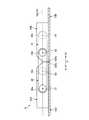 各補強部材44a〜44dは、上底及び下底が多少湾曲した台形状の断面形状を有する。各補強部材44a〜44dの長手方向両端部の表面には、他の表面よりも一段低い面である押さえ面44eがそれぞれ設けられている(図5参照)。各押さえ面44eは、各支持部材42,43の押さえ面42a,43aと略同程度の高さ位置に形成されている(図7B参照)。補強部材44a〜44dの設置本数は適宜変更可能である。  Each reinforcing