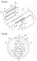 第1マーカー26の外周面における両端部には、面取り部32、34が形成されている。換言すれば、第1マーカー26の外周面の先端部は、先端に向かってテーパ状に縮径し、第1マーカー26の外周面の後端部は、後端に向かってテーパ状に縮径している。図2の例では、面取り部32、34は、C面状に形成されているがR面状に形成されていてもよい。  Chamfers 32 and 34 are formed at both ends of the outer peripheral surface of the