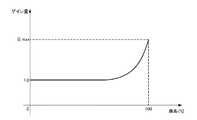 ここで、周辺光量落ちとは、撮影条件及び撮影レンズに固有の特性であり、撮像画像の画像中央部に比べて画像周辺部の明るさが低下(暗く)なってしまう状態のことである。このように、周辺光量落ちが生じている場合、撮像画像内の明るさは不均一になる。周辺光量落ち補正ゲインデータは、撮像画像内で不均一になっている明るさを略々均一にするような所定の補正を行うための補正情報であり、画像周辺部の明るさに対するゲインを上げるようなデータとなされている。より具体的には、周辺光量落ち補正ゲインデータは、図3に示すように、撮像画像の像高rに対する補正ゲイン量のデータとして用意されている。なお、像高とは、撮像面における光軸から各像点までの距離である。周辺光量落ち補正ゲインデータは、定性的な特性としては、像高rが大きくなるほど、つまり画像の周辺部になるほど補正ゲイン量が大きくなり、像高rが100%のところで補正ゲイン量が最大値G_maxとなるようなデータとなされている。 Here, the peripheral light amount drop is a characteristic unique to the shooting conditions and the shooting lens, and is a state in which the brightness of the peripheral portion of the image is lower (darker) than the central portion of the captured image. Thus, when the peripheral light amount drop occurs, the brightness in the captured image becomes non-uniform. Peripheral light fall correction gain data is correction information for performing a predetermined correction so that the nonuniform brightness in the captured image is substantially uniform, and increases the gain with respect to the brightness of the peripheral portion of the image. It is made such data. More specifically, the peripheral light amount drop correction gain data is prepared as correction gain amount data for the image height r of the captured image, as shown in FIG. The image height is the distance from the optical axis on the imaging surface to each image point. As the qualitative characteristics of the peripheral light amount drop correction gain data, the correction gain amount increases as the image height r increases, that is, the peripheral portion of the image. When the image height r is 100%, the correction gain amount is the maximum value. The data is G_max.
