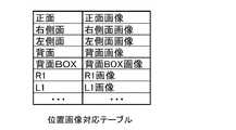 例えば、図3Bの位置画像対応テーブル16中1行目のデータにおいて、図3Aの位置順序テーブル15に記載の「正面」という位置情報は、後述の図4Aで示される「正面画像」の画像データに対応することが定義される。