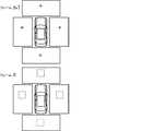 図7は、移動車における典型的な配置のサラウンドビューカメラによる上面視部分のレイアウトを示す。図7の黒い三角は、搭載ビデオカメラ2−iの一例としての位置を示す。図7に示す四角は、対応する上面視部分を示す。 FIG. 7 shows a layout of a top view portion by a surround view camera having a typical arrangement in a mobile vehicle. A black triangle in FIG. 7 indicates a position as an example of the on-board video camera 2-i. The squares shown in FIG. 7 indicate the corresponding top view parts.