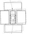 更なる一実施の形態において、上面視画像は、既存のサラウンドビューシステムにより、ユーザインタフェースのコンポーネントとして作成される。本実施の形態では、合成上面視画像は、四角形をしており、そのアルゴリズムにより使用される領域は、合成上面視画像から取得される。 In a further embodiment, the top view image is created as a component of the user interface by an existing surround view system. In the present embodiment, the combined top view image has a rectangular shape, and the region used by the algorithm is acquired from the combined top view image.