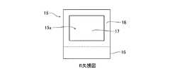 この基板側接続部15は、例えば幅が約9mmで長さが約6mm及び厚さt2が例えば0.8mmの矩形状に形成され、図5に示すように、主面15bと反対側の裏面が、配線パターンとの第1の当接面15aを構成する。この当接面15aは、例えば凹状に形成されている。第1の当接面15aは、R矢視(平面視)で見て例えば角形の中央領域17と、その外側の外周枠状領域18とを備えて構成され、中央領域17が外周枠状領域18よりも薄くなるように形成されることで、垂直断面形状がコの字型の矩形凹状に形成されている。  The board-
