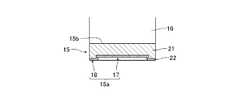 基板側接続部15は、図6に示すように、例えば少なくとも第1の当接面15a側に設けられたメッキ層22を有し得る。このメッキ層22は、その厚さが2〜6μm程度のニッケル等からなる。そして、メッキ層22は、負極端子12の金属母材21と共に厚さが薄い中央領域17と外周枠状領域18とを備えた第1の当接面15aを構成する。  As shown in FIG. 6, the substrate-