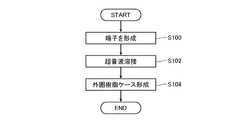 図7に示すように、パワー半導体モジュール1は、全体の製造工程の中で、端子形成工程(ステップS100)、超音波溶接工程(ステップS102)及び外囲樹脂ケース形成工程(ステップS104)の各工程を経た上で、最終的に完成品として製造される。以下では、上記各工程について説明する。なお、ベース基板3や三相インバータ回路、制御信号系端子部を構成する各種端子等は別途作製して準備しておく。  As shown in FIG. 7, the power semiconductor module 1 includes a terminal forming process (step S100), an ultrasonic welding process (step S102), and an enclosing resin case forming process (step S104) in the entire manufacturing process. After going through the process, it is finally manufactured as a finished product. Below, each said process is demonstrated. Note that the