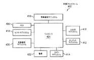 入出力サブシステム410は、コントローラ404に動作可能に接続される1つまたは複数の入出力装置を含むことができる。たとえば、入出力サブシステムは、キーボード、マウス、1つまたは複数のボタン、サム・ホイールおよび/またはディスプレイ(たとえば液晶ディスプレイ(LCD)、発光ダイオード(LED)、干渉変調器ディスプレイ(IMOD:Interferometric  modulator  display)または任意の他の適切なディスプレイ技術)を含むことができる。一般に、入力装置は、データ、コマンドおよび応答を外部環境から計算プラットフォーム402中に転送するように構成される。ディスプレイは、一般に、計算プラットフォーム402のユーザと携帯型装置上で動作するオペレーティング・システムまたはアプリケーション(複数可)との間に使いやすい視覚インタフェースを提供するグラフィカル・ユーザ・インタフェース(GUI)を表示するように構成される。一般に、GUIは、プログラム、ファイルおよびグラフィック画像を有する動作オプションを提示する。ユーザは、動作の間、そのグラフィック画像と関連する機能およびタスクを起動するために、ディスプレイ上に表示される様々なグラフィック画像を選択して作動させることができる。また、入出力サブシステム410は、タッチ・パッドおよびタッチ・スクリーンなど、タッチ・ベースの装置を含むことができる。タッチ・パッドは、ユーザのタッチ・ベースの入力を検出する表面を含む入力装置である。同様に、タッチ・スクリーンは、ユーザのタッチ入力の有無および場所を検出するディスプレイである。また、入出力システム410は、2回または3回の指のタッチなど、2回以上のタッチ入力の有無、場所および動きを識別することができるデュアル・タッチまたはマルチ・タッチのディスプレイまたはタッチ・パッドを含むことができる。  The input /