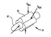 カテーテル18は、遠位端部22に取り付けられたバルーン24を有する。バルーン24は、膨張状態(図4)において非円形の輪郭を有し、部分82は直径において腎動脈よりも小さく、別の部分80は形状において非円形である。非円形な部分の最大直径DMAJは、腎動脈の内径と等しいか、又はそれよりもわずかに小さく、最小直径DMINは、最大直径よりも小さい。The