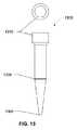 図11は、本開示の例示的態様に従う、CPT1100用の埋込ポート1104を示す。いったん組み立てられると、埋込ポート1104はユーザーに埋込材をCPT1100のチップに投入させ、そこで、中空繊維フィルター1101を所定の位置に保持する。埋込材は、埋込材を埋込ポート1104に挿入することができるシリンジまたは他の器具を用いて注入される。濃縮ピペットチップを集めた機械も、埋込材を挿入するためにシリンジまたは他の器具を用いてよい。  FIG. 11 shows an embedded