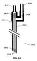 図24は、本開示の例示的態様に従う、中空繊維フィルターを有するCPT2400の垂直断面を示す。この態様によれば、CPT2400はフィルターハウジング2402、溶出流体ポート2417、透過ポート2419、およびフィルター埋込材2403により所定の位置に保持されている一つ以上の中空繊維フィルター要素2401を含む。三つの中空繊維フィルター要素2401を示しているが、この開示を考慮して当業者はそれ以上または以下も考えることができる。中空繊維フィルター要素2401における開いた端部は、サンプル液体を引き込むためのサンプルポート2405として役立つ。  FIG. 24 shows a vertical cross section of a