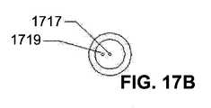 図17Aおよび17Bは、本開示の例示的態様に従う、CPT1700についての別の構造を示す。図17Aは、開口1705、繊維フィルター1701および透過ドロー1709を含むCPT1700を示す。この態様において、透過パージはない。この態様によれば、他の態様における透過パージの長さと同程度に、透過ドロー1709が短くなっている。繊維フィルター1701および透過ドロー1709の各々が、埋込材1703を用いてCPT1700内に固定されている。接続部分1713が、CPT1700の操作のために、CPT1700を濃縮ユニットに接続させる。接続部分1713内には、二つのポートが含まれている。図17Bは、繊維フィルター1701に接続されているポート1717と透過ドロー1709に接続されているポート1719とを含む二つのポートを示す。操作中、透過チャンバーは流体で満たされ、サンプル処理の全体を通して満たされたままである。繊維フィルター1701の溶出中、透過チャンバーを加圧する代わりに、透過ドロー1709上で弁を閉じて透過チャンバーが液体で満たされたままにする。溶出中、流体が動いて透過物側に入るための空間があるので透過チャンバーを加圧する必要はなく、そのために溶出流体または泡状物が繊維フィルター1701を容易に通過しない。  17A and 17B show another structure for