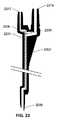 図19〜25の前記態様における垂直に向けられたフラットおよび中空繊維フィルターは、CPTの上端、すなわち、濃縮器への接合点における溶出および透過ポートに隣接している位置からフィルターの底まで伸びる。図1について説明したように、そのような方向および長さによって、非常に大きな薄膜表面積にわたって、頂上から底までの移動の方向において、ここに記載の接線方向洗い流しにより粒子を回収することが可能となり、また、被保持物の非常に小さな断面積故に、粒子を回収するために用いられる液体(または湿潤泡状物)の非常に少量体積のみを用いて大きな体積を迅速に処理することが可能になる。これにより、さらに、濃縮係数が著しく増加し、底部開口を通して引き込まれる非濃縮サンプルおよび同じ開口を通して分出される濃縮サンプルによってピペット内での使用が可能になる。さらに、最近の技術により開示されているように、別の透過ポートは、処理されるサンプル体積を、薄膜表面積/薄膜流速および処理にかかる時間によって制御できるようにし、これに対して、チップそのものの体積に基づいて制限を受ける。 The vertically oriented flat and hollow fiber filters in the embodiment of FIGS. 19-25 extend from the top of the CPT, ie, adjacent to the elution and permeation port at the junction to the concentrator, to the bottom of the filter. As described with respect to FIG. 1, such a direction and length allows the particles to be collected by a tangential wash described herein in the direction of movement from top to bottom over a very large thin film surface area. Also, because of the very small cross-sectional area of the retentate, it is possible to quickly process large volumes using only very small volumes of liquid (or wet foam) used to recover particles Become. This further increases the concentration factor significantly and allows use in a pipette with a non-concentrated sample drawn through the bottom opening and a concentrated sample dispensed through the same opening. In addition, as disclosed by recent technology, another permeation port allows the sample volume to be processed to be controlled by the membrane surface area / membrane flow rate and the processing time, as opposed to the tip itself. Limited by volume.