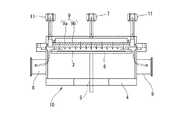 図2は、本発明の第2実施形態に係るシャワーヘッド9を備えたオゾン処理装置10の断面図である。なお、本発明の第2実施形態に係るシャワーヘッド9およびオゾン処理装置10の説明では、第1実施形態に係るオゾン処理装置2と同様の構成については同じ符号を付し、詳細な説明を省略する。同様に、以下の第3〜第8実施形態の説明において、既出の実施形態と同様の構成については同じ符号を付し、詳細な説明を省略する。  FIG. 2 is a cross-sectional view of the