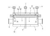 図8は、本発明の第6実施形態に係るシャワーヘッド21を備えたオゾン処理装置22の断面図である。第6実施形態に係るシャワーヘッド21は、第2実施形態に係るシャワーヘッド9に、第5実施形態と同様の排気特性制御板19を備えたものである。  FIG. 8 is a cross-sectional view of an