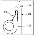 また、実施の形態1では、延出部31が側壁面2dから垂直に立ち上がって延びる場合について説明したが、このような場合に限らない。例えば、図5に示されるように、延出部33を湾曲するように形成しても良い。具体的には、図5に示すように、延出部33の外側における加熱室2の壁面との境界は、曲線状に湾曲しながら立ち上がるように形成されている。延出部33がこのような形状を呈することにより、加熱室2の側壁面2dから垂直に立ち上がる場合よりも、送風ファン20からの風と対向する領域において、乱流の発生を抑制して、気流の流れを整えることができる。これにより、送風ファン20による風(エアカーテン)が加熱室2内へ入ることを抑制することができる。  In the first embodiment, the case has been described in which the extending