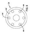 図6は、第2端部44チャネルを含むマンドレル30の第2端部34の端面図である。上述したように、図6には、6つの第2端部チャネル44を含むマンドレル30が示されているが、6つより多い数、または少ない数の遠位端部チャネルを含むことも可能である。図6に示したように、第2端部チャネル44は、第2端部34を貫通して延びる。言い換えれば、第2端部チャネル44は、第2端部34を貫通して延びる孔、および内腔のうちの少なくともいずれか一方として形成される。  FIG. 6 is an end view of the
