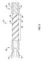 マンドレル30は、マンドレル30の外側表面周囲に延びる1つ以上の溝38を備えるように設計される。例えば、溝38は、マンドレル30に沿って、らせん状に延びる一本の、または連続したチャネルである。しかしながら、別の実施例では、溝38は、互いに並行をなす2、3、4、5、6、7、8、9、10本またはそれ以上の数の独立した溝を有する場合もある。例えば、図3には、互いに並行に回転する6本の独立した溝38が示されている。  The