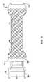 図9は、外表面に沿って配置された管状部材18を含むマンドレル30上にフィラメント12で形成したステントなどの拡張可能な骨組み50を移動することを含むステント10を製造する第3工程を示したものである。図9には、管状部材が、第2端部チャネル44を貫通して移動されて、第2端部34から離間して延びていることが示されていることに留意されたい。ステント10を製造するこの工程では、管状部材18の一端部または両端部は、延びて第1端部チャネル40と第2端部チャネル44の内部で固定される。しかしながら、管状部材18は、第1端部チャネル40と第2端部チャネル44とを通って延びるがマンドレル30に固定された管状部材18の上を拡張可能な骨組み50を移動させる前に第1端部チャネル40と第2端部チャネル44の内部に固定されない。その上、いくつかの例では、拡張可能な骨組み50は、管状部材18が第2端部チャネル44を通って移動されて第2端部チャンネル44の内部に固定される前に、マンドレル30上を移動される。  FIG. 9 illustrates a third step of manufacturing a