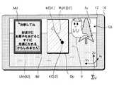 As described above, in the present embodiment, the position of the bulletin board Bd in the virtual space SP-V does not change. Therefore, the virtual line LC changes by the vector PL [t-1] [t], so that the final row LMS [t] is the vector PM [t-1] [t] as viewed from the final row LMS [t-1]. The message Ms is moved by the vector (-PM [t-1] [t]) in the opposite direction to the vector PM [t-1] [t] in the virtual space SP-V. It can be grasped as having done.