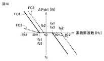 又、タウン蓄電池用電力変換装置21の運転計画は「第1の運転計画」に対応し、作成周期の5分は「第1の周期」の一例に対応する。同様に、需要家宅18内の分散電源の運転計画は「第2の運転計画」に対応し、作成周期の30分は「第2の周期」の一例に対応する。又、図18〜図21での系統周波数は「交流電圧周波数」に対応し、図18及び図19の差分電力ΔPsb1,ΔPsb2は、「交流電圧周波数に応じた修正値」の一実施例に相当する。更に、図20に示されたタウン蓄電池用電力変換装置21へ通知される垂下特性は「第1の垂下特性」に対応する。同様に、図18に示された太陽電池用電力変換装置2へ通知される垂下特性、及び、図19に示された蓄電池用電力変換装置4へ通知される垂下特性の各々は、「第2の垂下特性」に対応する。 Further, the operation plan of the townbattery power converter 21 corresponds to the “first operation plan”, and 5 minutes of the creation cycle corresponds to an example of the “first cycle”. Similarly, the operation plan of the distributed power source in the customer'shouse 18 corresponds to the “second operation plan”, and 30 minutes of the creation cycle corresponds to an example of the “second cycle”. Further, the system frequency in FIGS. 18 to 21 corresponds to “AC voltage frequency”, and the differential powers ΔPsb1 and ΔPsb2 in FIGS. 18 and 19 correspond to an example of “correction value according to AC voltage frequency”. To do. Furthermore, the drooping characteristic notified to the townbattery power converter 21 shown in FIG. 20 corresponds to the “first drooping characteristic”. Similarly, each of the drooping characteristics notified to the solarcell power converter 2 shown in FIG. 18 and the drooping characteristics notified to the storagebattery power converter 4 shown in FIG. Corresponding to the "sag characteristics"