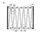 導電性微小パターン140は、情報をレンダリングするディスプレイの可視部分に重なる、少なくとも1つの可視光透明導電性区域を含む。可視光透明導電体とは、ディスプレイの一部分が、導電性微小パターンの区域を通して見ることができ、かつ微小パターンの区域が、パターンの平面において、又は換言すれば、導電性微小パターンが堆積され、これが隣接する基材の主表面に沿って導電性があることを意味する。好ましい導電性微小パターンは、二次元メッシュを有する区域、例えば、正方形グリッド、矩形(非正方形)グリッド、又は規則的な六角形ネットワークを含み、導電配線は、メッシュの配線と電気的に接触している導電体が堆積されていない、メッシュ内の囲まれた開口を画定する。開放空間、及びそれらの縁部で関連付けられる導電体配線は、本明細書においては、セルと称される。メッシュセルの他の有用な形状としては、ランダムなセル形状、及び不規則多角形が挙げられる。  The