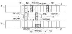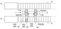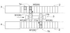 説明を加えると、物品収納棚における収納部の位置が固定されている場合、第1移載装置と第2移載装置との間隔を、棚横幅方向に並ぶ2つの収納部の間隔と同じ一定の間隔に固定することが考えられる。しかし、第1移載装置と第2移載装置との間隔を一定の間隔に固定すると次のような場合に対応できない。In other words, when the position of the storage unit in the article storage shelf is fixed, the interval between the first transfer device and the second transfer device is the same as the interval between the two storage units arranged in the width direction of the shelf. It is conceivable to fix the interval. However, if the interval between the first transfer device and the second transfer device is fixed at a fixed interval, the following case cannot be handled.