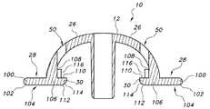 上記したように、コネクタにはキャップ12が含まれる。キャップ12は、二枚貝形状またはボウル(椀)形状を有し得る。キャップ12の一部によって非変形ローブ部24を形成し、図4Aに示されているように弾性ローブ部26に結合させることができる。または、弾性ローブ部26及び非変形ローブ部24が単一的または一体的であるように、ヘッド部12を単一要素として形成することもできる。本発明の一態様では、持ち上げ用タブ28及び係合部30を弾性ローブ部に結合させることができ、より望ましくは複数の弾性ローブ部26を備えた一体部品として形成することができ、またはより望ましくは弾性ローブ部26及び非変形ローブ部24を備えた一体部品(すなわちキャップ12)として形成することもできる。あるいは、キャップ12の様々な構造部材は全て、別々に形成して後から接着、融合、オーバーモールド成形などを含む技術(単独または組合せ)によって結合させることもできる。  As described above, the connector includes a
