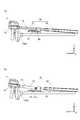 所定のピッチで軸ヒンジ21bを段階的に移動可能とし、各位置で保持するように、ガイド孔10aの内縁にセレーションを形成しておくことが好ましい。また、軸ヒンジ21bの位置調整を許容するために、ガイド孔10aの形成部材に適度な弾性を持たせる。これにより、使用中に、軸ヒンジ21bが移動しないように保持することできるとともに、ガイド孔10aの延在方向に力を加えることで位置調整することができる。The front end of each