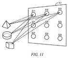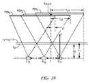 モジュール402.5によれば、2つ以上の2次元座標値(Nx,Ny)は、選択された標的について、候補画素が同一の標的からの投影によって実際に照明されているかどうかを決定するために計算される。上で議論した想定及び3D座標系の原点をセンサS11の中心に配置すること基づいて、図19の例のイメージャアレイ及び現在選択された標的Tは、次の関係を有する。