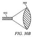 図7Aは、いくつかの実施形態による第1の画像取込みシステム101Cを含む第1の内視鏡の説明図である。画像取込みシステム101Cは、細長い部分202を含む内視鏡を含み、この細長い部分202は、第1の端部分204、第2の端部分206、及び第1の端部分204のチップ部分208を含む。第1の端部分204は、ヒトの体腔内に挿入されるように寸法決めされる。複数の画像センサ(図示せず)を含むセンサアレイ210が、第1の端部分204のチップ部分208に結合される。いくつかの実施形態によれば、センサアレイ210の各センサは、画素のアレイを含む。細長い部分202は、イメージャ・センサアレイ210によって対象物を撮像できるように、体腔内の標的対象物の十分近くにチップ部分208を位置付けするのに十分な長さを有する。いくつかの実施形態によれば、第2の端部分206は、機械式アーム(図示せず)と確実に相互嵌合するように、概ね上述したような物理的な輪郭及び/又は構造(図示せず)を含む。細長い部分202は、イメージャ・センサアレイ210と情報を電子的に通信するための1つ又は複数の電子信号経路212も含む。光源214は、撮像される対象物を照明するように配置される。いくつかの実施形態によれば、光源214は、非構造化光(unstructured  light)、例えば、白色光、色フィルタ処理された光、又はいくつかの選択された波長の光とすることができる。いくつかの実施形態によれば、光源214は、チップ208に位置され、他の実施形態では、必要に応じて、内視鏡101Cとは別に位置される。Endoscopic Imager System FIG. 7A is an illustration of a first endoscope that includes a first