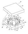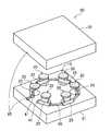 下側金型51の上面側には、平面視で略円形状のキャビティ53が凹陥形成されている。また、上側金型52の下面側にも、下側金型51のキャビティ53と同じ大きさおよび形状となるキャビティ53が形成されている(図3参照)。下側金型51および上側金型52は、キャビティ53,53同士が互いに上下に対向するように重ね合わされている。そして、後述する第1収容部61,61,…、第2収容部62、および成形部64,64,…は、下側金型51および上側金型52が重ね合わされたときのキャビティ53,53