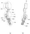 なお、本実施例では非駆動側離間保持部材36を収容姿勢から取り外し姿勢へ変形する付勢力の発生源として非駆動側離間保持部材36の弾性復元力を用いたが、バネ等の別体の付勢部材を用いる構成としもよい。非駆動側離間保持部材36の変形部36jを基点に把持部36hだけが変形する構成としたが、変形部36jを設けずに非駆動側離間保持部材36全体がたわみ変形する構成としてもよいし、変形の基点の数を増やしてもよい。  In this embodiment, the elastic restoring force of the non-driving side