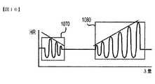 図10は、一連の触覚フィードバック反応の実施例のグラフ表現を示しており、各触覚フィードバック反応の周波数及び/または振幅は、量に少なくとも基づくことができる。具体的には、図10は、シミュレーションされた減少効果と増加効果とを示しており、第1の触覚フィードバック反応1070の周波数及び/または振幅は、経過時間量の関数として減少し得、第2の触覚フィードバック反応1080の周波数及び/または振幅は、経過時間量の関数として増加し得る。本開示によると、変化する振幅と周波数とを有する触覚フィードバック反応は、システム特徴の状態の変化を示すことができる。たとえば、車両内のクルーズ制御をオンにすると、ユーザは、第2の触覚フィードバック反応1080に類似の触覚フィードバック反応を感知することができ、クルーズ制御をオフにすると、ユーザは、第1の触覚フィードバック反応1070に類似の触覚フィードバック反応を感知することができる。  FIG. 10 shows a graphical representation of an example of a series of haptic feedback responses, where the frequency and / or amplitude of each haptic feedback response can be based at least on the quantity. Specifically, FIG. 10 shows simulated decrease and increase effects, where the frequency and / or amplitude of the first