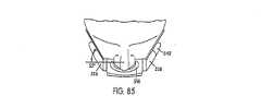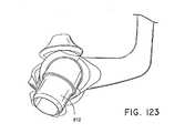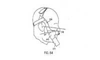 図1に示すように、例えば、ベース部分は、患者の顔に比較的小さい力の成分を加えるように、実質的に剛直な構造である。すなわち、ベース部分は、気体によって圧縮されたとき、実質上膨脹可能または伸張可能ではない。逆に、ノズルは、患者の顔に比較的大きな力の成分を与えるように柔軟な、可撓性構造を有してもよい。すなわち、ノズル50の第1の部分56は、ノズル50を通して患者の顔に力の成分を与えるために、ばね構造として作用する、すなわちばね負荷されているまたは弾力性である。ばね負荷されることによって、ノズルが、密封の目的で、使用者の鼻密封領域に所定の力を加える。好ましくは、ノズルは、使用者に密封力を与えるために、加圧された気体が導入される前に初期荷重を加える。結果として、ベース部分及びノズルがともに、鼻用アセンブリと患者の鼻腔との間の密封を与えるための力を供給する。  As shown in FIG. 1, for example, the base portion is a substantially rigid structure that applies a relatively small force component to the patient's face. That is, the base portion is not substantially inflatable or expandable when compressed by a gas. Conversely, the nozzle may have a flexible structure that is soft to impart a relatively large force component to the patient's face. That is, the