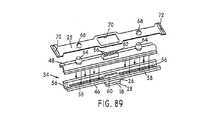 特に、前部部分60は、その内部表面上にくぼみ66を有する実質的に円筒形の導管64を備える。くぼみ66は、第1のコネクタ部分24上の複数のアーム38のリブ部分40を受けるように構成される。すなわち、複数のアーム38は、第1のコネクタ部分24が第2のコネクタ部分26の導管64内に挿入するとき、互いに向かって押圧される。いったんアーム38のリブ部分40がくぼみ66に到達すると、アーム38は、第1及び第2のコネクタ部分24、26の間の相互鎖錠係合を与えるためにくぼみ66内へ外向きにばね支持することができる。第2のコネクタ部分26を枠16から分離するためには、患者は、リブ部分40をくぼみ66から解放するのに十分な力で、第2のコネクタ部分26を枠16から軸線方向外向きに引くだけでよい。  In particular, the
