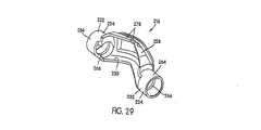 図15及び図16は、第2の対の取入導管76の第1の端部に対して第1の対の導管74の第2の端部を相互接続するように構成したコネクタの実施形態を示す。図15に示すコネクタ80は、患者の頭部を覆って上向きに導管74、76の経路を設定するように適切に傾斜している。図16に示すコネクタ82は、患者の顎の下へ下向きに導管74、76の経路を設定するように適切に傾斜している。  15 and 16 illustrate an embodiment of a connector configured to interconnect the second end of the first pair of