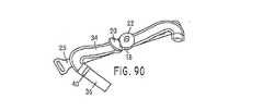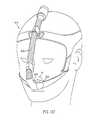 ヘッドギアアセンブリ20が、枠16及びノズルアセンブリ18を患者の顔上の所望の調節位置に維持するために、枠16に取り付けられた第2のコネクタ部分26に取外し可能に取り付けられる。図18に示すように、ヘッドギアアセンブリ20は、側部部分92を接続する後部部分94を備える2つの側部部分92を備える。各側部部分92は、側部ストラップ96を備える。2つの側部部分92を相互接続する後部部分94は、患者の頭部の頭頂部上を通る上側ストラップ98と、患者の頭部の後部部分の周囲を通る後部ストラップ100と、を備える。しかし、ヘッドギアアセンブリは、枠に恒久的に取り付けてもよい。  A