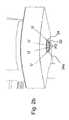 この目的のために、光学スキャナ20は、焼結に適したパワー特性を有する、関連するレーザ源から連続的に出射されたレーザ放射線Lを可動な集束要素24のミラー22を介してZ軸に沿って伝導するコリメータ21を備える。可動な集束要素24は、Z軸に平行な光軸αの方向に沿ってリニアアクチュエータを介して可動であるレンズ25を基本的に備えている。可動な集束要素24の下流では、静止ミラー26が配向ミラー27に向かってレーザ放射線を鉛直方向または水平方向に反射する。配向ミラー27は、移動可能であり、配向ミラー27を回転させるようにガルバノメトリックアクチュエータ(図示せず)によって動かされる。それによってレーザビームLは、二つの相互に直交する回転軸に沿って、即ち配向ミラー27の前後軸に一致する第1の回転軸θと、それに直交してかつ軸Xと平行な第2の回転軸ωとに沿って反射される。これらの軸に沿って配向ミラー27を動かすことによって、レーザ放射線Lを垂直入射軸Iに対して、例えば図4に示す方向I1,I2(軸ω)および図5に示すI3,I4(軸θ)の限界方向まで動かすことができる。従って、X,Y方向における作業平面110上のレーザスポットSと同様にこれらの限界方向I1,I2,I3,I4によって画定される円錐空間内でレーザビームLは動かされる。図4および図5から明らかであることは、これらの限界方向I1,I2,I3,I4および円錐空間は、配向ミラー27の中心とクラウン30の周縁部とを結ぶ線によって画定されることである。しかしながら、レーザスポットSは、回転軸θおよびωに起因して正確に球状のキャップに沿って移動するので、光軸αに沿って移動する集束要素24の動作によって、集束レンズ25の位置は、平坦面にレーザスポットSを配置するように、集束位置即ちレーザスポットSを移動させることによって補正され得る。また、明らかなことには、集束要素24は、回転軸θおよびωの影響から独立したZ軸に沿って集束されるレーザスポットSの移動を可能にする。ここで説明される光学スキャナ20は、同出願人による特許EP1228835にて公知のモデルの光学スキャナである。For this purpose, the