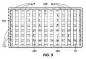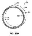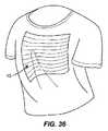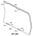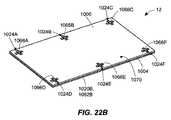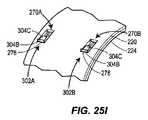なおもさらに、取り付け可能な物品の可撓性支持体は、例えば、可撓性ディスプレイが受け得る、可能性として考えられる運動のタイプを制限することによって、可撓性ディスプレイを保護するための種々のタイプの構造を組み込んでもよい。これらのタイプの構造は、例えば、可撓性支持体内またはその上に配置される、1つ以上のセットの横方向および/または縦方向バー、支柱、または支索、堅いが、蝶着された材料のメッシュ等を含み、2つの次元における可撓性支持体の運動を制限し、それによって、2つの次元のそれぞれにおける可撓性ディスプレイの曲がりに起因する、可撓性ディスプレイへの損傷を防止することができる。同様に、1つ以上の縦方向および/または横方向部材が、可撓性支持体内に構成され、デバイスの縦軸および/またはデバイスの横軸の一方もしくは両方の周囲における可撓性支持体の曲げ運動を制限してもよい。本構造は、したがって、可撓性電子ディスプレイの種々の層を亀裂、座屈、剥離、または別様に損傷させ得る、曲げ運動からの可撓性ディスプレイへの損傷を防止するように、1つ以上の方向における可撓性ディスプレイの撓曲を防止または制限する。なおもさらに、可撓性支持体は、2つの次元における支持体(それによって、支持体上に搭載されるディスプレイ)の曲がりを制限するように動作する、材料の蝶着されたシートを含んでもよい。殆どの場合、可撓性基板は、2つの次元における可撓性基板の曲げ半径を、2つの次元のそれぞれにおける可撓性電子ディスプレイの曲がりの許容値内の範囲に制限するようにともに動作する、曲がりを制限する構造要素を含む。しかしながら、可撓性基板は、2つの次元のそれぞれにおける曲がりの異なる量または範囲を可能にしてもよい。所望に応じて、電子機器モジュールは、堅くあってもよく、例えば、可撓性基板の端部または可撓性基板の2つの端部間の任意の点において、可撓性基板に結合されてもよい。同様に、可撓性支持体は、可撓性ディスプレイの縁に沿って配置され、可撓性電子ディスプレイの縁または側面における衝突による可撓性電子ディスプレイへの損傷を防止または制限する、例えば、金属ワイヤまたは他の材料から形成される縁またはリッジを含んでもよい。 Still further, the flexible support of the attachable article may provide various means for protecting the flexible display, for example, by limiting the types of possible movements that the flexible display may undergo. May be incorporated. These types of structures may include, for example, one or more sets of lateral and / or longitudinal bars, struts, or braces, rigid but hinged, disposed within or on a flexible support. Including movement of the flexible support in two dimensions, including a mesh of material or the like, thereby preventing damage to the flexible display due to bending of the flexible display in each of the two dimensions can do. Similarly, one or more longitudinal and / or transverse members may be configured within the flexible support and the flexible support around one or both of the device longitudinal axis and / or the device transverse axis. The bending movement may be restricted. The present structure thus provides one way to prevent damage to the flexible display from bending motion, which can crack, buckle, peel, or otherwise damage various layers of the flexible electronic display. Prevent or limit flexing of the flexible display in the above directions. Still further, the flexible support may include a hinged sheet of material that operates to limit the bending of the support (and thereby the display mounted on the support) in two dimensions. Good. In most cases, the flexible substrates work together to limit the bending radius of the flexible substrate in the two dimensions to within a range of bending tolerances of the flexible electronic display in each of the two dimensions. , Including structural elements that limit bending. However, the flexible substrate may allow for different amounts or ranges of bend in each of the two dimensions. If desired, the electronics module may be rigid, for example, coupled to the flexible substrate at an end of the flexible substrate or at any point between the two ends of the flexible substrate. Is also good. Similarly, the flexible support is disposed along an edge of the flexible display to prevent or limit damage to the flexible electronic display due to a collision at the edge or side of the flexible electronic display, for example, It may include edges or ridges formed from metal wires or other materials.