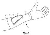 ある場合には、動的可撓性物品は、動的可撓性物品を腕、脚等のさらなる構造上に接続する、または取り付ける、さらなる接続部材に取り付けられてもよい。さらなる接続部材は、そのようなネオプレン等の可撓性および/または伸展可能材料から作製されるスリーブ等、スリーブの形態であってもよく、可撓性支持構造をスリーブに取り付けるための取付構造を含んでもよい。そのような接続構造は、可撓性支持構造上に配置されるフックおよびループ材料の他方の部分と噛合する、フックおよびループ材料(フックまたはループ材料のいずれか)の一方の部分を含んでもよい。本接続構造はまた、または代わりに、接続部材および可撓性支持構造上に配置される、磁石および/または透磁性材料を含んでもよい。接続部材は、代わりに、可撓性取り付け可能な物品が配置され得る、ポケットを含んでもよく、可撓性電子構成要素は、外向きに面し、ポケットを通して可視である。 In some cases, the dynamic flexible article may be attached to additional connecting members that connect or attach the dynamic flexible article on additional structures such as arms, legs, and the like. The additional connection member may be in the form of a sleeve, such as a sleeve made of a flexible and / or extensible material such as neoprene, and may include an attachment structure for attaching the flexible support structure to the sleeve. May be included. Such a connection structure may include one portion of the hook and loop material (either the hook or the loop material) that mates with the other portion of the hook and loop material disposed on the flexible support structure. . The connection structure may also or alternatively include a magnet and / or a magnetically permeable material disposed on the connection member and the flexible support structure. The connecting member may alternatively include a pocket in which a flexible attachable article may be located, with the flexible electronic component facing outward and visible through the pocket.