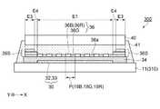 本実施形態において、着色層36Bと着色層36Rとが隣り合うY方向が、本発明における第1の方向の一例であり、Y方向と直交するX方向が、本発明における第1の方向に交差する第2の方向の一例である。また、着色層36Bが本発明における第1の着色層の一例であり、着色層36Rが本発明の第2の着色層の一例であり、着色層36Gが本発明の第3の着色層の一例である。  In the present embodiment, the Y direction in which the