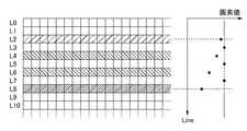 図2のように、有用な電荷を流出した行(L2〜L7)の画素値は、前後の行(L0、L1、L8〜L10・・・)の画素値よりも電荷量が少なく、信頼のおけないものとなるため、データの補間を行う等の補正処理を行う必要がある。例えば、特許文献3では、前述のリセット走査を図3のように物理的に隣接しない行に関して順次リセット走査(TC301)を行いながら、放射線の照射開始の検出を待つように構成している。これにより、放射線検知時のデータが欠損する行(L2、L4、L6、L8)を、図4のように連続的に発生させないようにし、欠損行のデータを前後の正常な行のデータから補間することで、画像データの補正処理精度を向上させる方法が提案されている。例えば、欠損行がL2の場合は、前後の正常な行(L1、L3)を用いて補間処理を行うことが提案されている。  As shown in FIG. 2, the pixel values of the rows (L2 to L7) from which the useful charges flow out have smaller charge amounts than the pixel values of the preceding and following rows (L0, L1, L8 to L10,. Therefore, it is necessary to perform correction processing such as data interpolation. For example,