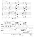 図11、図12は、本実施形態に係る放射線撮像システムにおける撮像シーケンスを示すタイミングチャートである。図11、図12を参照して放射線撮像システムの動作を説明する。本実施形態においても、駆動制御部103のリセット走査制御部105は、放射線検出部2を構成する2次元センサアレイへの暗電荷の蓄積を防ぐために、定期的にリセット走査を実施する。リセット走査制御部105は、2次元センサアレイ上で物理的に隣接しない行(走査ライン)を順次リセット走査するようにリセット走査の対象となる走査ラインを選択し、選択した走査ラインの変換素子を順次駆動する(TC1101、S1201)。  FIGS. 11 and 12 are timing charts showing an imaging sequence in the radiation imaging system according to the present embodiment. The operation of the radiation imaging system will be described with reference to FIGS. Also in the present embodiment, the reset