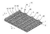 第1実施形態で用いた複合シート10においては、中央連続凸部40のそれぞれにおいては、図7及び図8(a)に示すように、第2方向Yに交互に配置された中央第1凸部41と、中央第1凸部41よりも高さの低い中央第2凸部42とが互いに連結されている。本明細書において、凸部が連結されているとは、隣り合う2個の凸部が、接合部によって隔てられておらず、一方の凸部の一部が他方の凸部の一部をなし、かつ他方の凸部の一部が一方の凸部の一部をなしていることをいう。