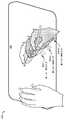 [0039]  図1において、タッチ表面108および/または機器102は、入力ツール114が参照番号118で示すようにツール入力を与えているか否かを判定するように構成されている。たとえば、入力ツール114は、ユーザがメッセージを書いている場合または写真群をスクロールしている場合にツール入力をアクティブに与えてもよい。また、入力ツール114が使用中で入力を与えている間、タッチ表面108および/または機器102は、ユーザタッチ入力を判定するようにしてもよい。第1の例において、ユーザタッチ入力は、入力ツール114を制御している手112の手のひら120による入力と関連付けられてもよい。第2の例において、ユーザタッチ入力は、入力ツール114を制御している手112の上部122による入力と関連付けられてもよい。これら第1の2つの入力例(たとえば、120および122)は、ユーザの動作に伴って頻繁に生じ得る非意図的な接触である可能性が最も高い(たとえば、ユーザは、メッセージを書く時に、書字手を平らな表面に添える癖を有する場合がある)。本明細書の背景においては、一般的な非意図的入力として、他の例(たとえば、手116の添え指)が存在することを理解されたい。第3の例において、ユーザタッチ入力は、他方の手116の指124および/または親指126による入力と関連付けられてもよい。場合により、これら第2の2つの入力例(たとえば、124および126)は、機器102に対する特定の動作(たとえば、ズーム機能、パン機能等)の指示を対象とした意図的な接触であってもよい。2つの入力(たとえば、124および126)は、動作の実行に関するユーザの意図および/または命令と関連付けられているが、動作の実行に関するユーザの意図および/または命令とは、3つ以上の接触が関連付けられてもよいし、1つ以下の接触が関連付けられてもよいことを理解されたい。In FIG. 1,